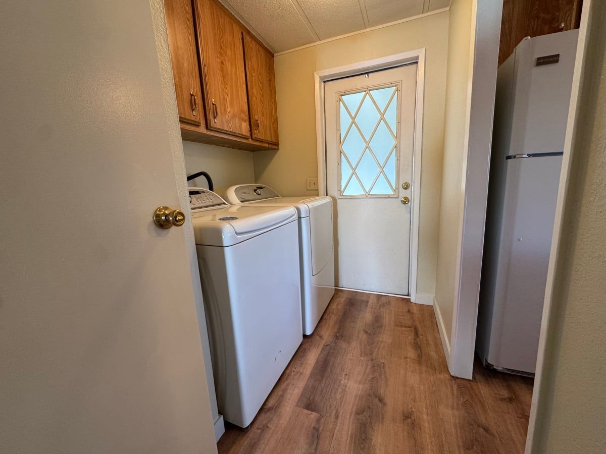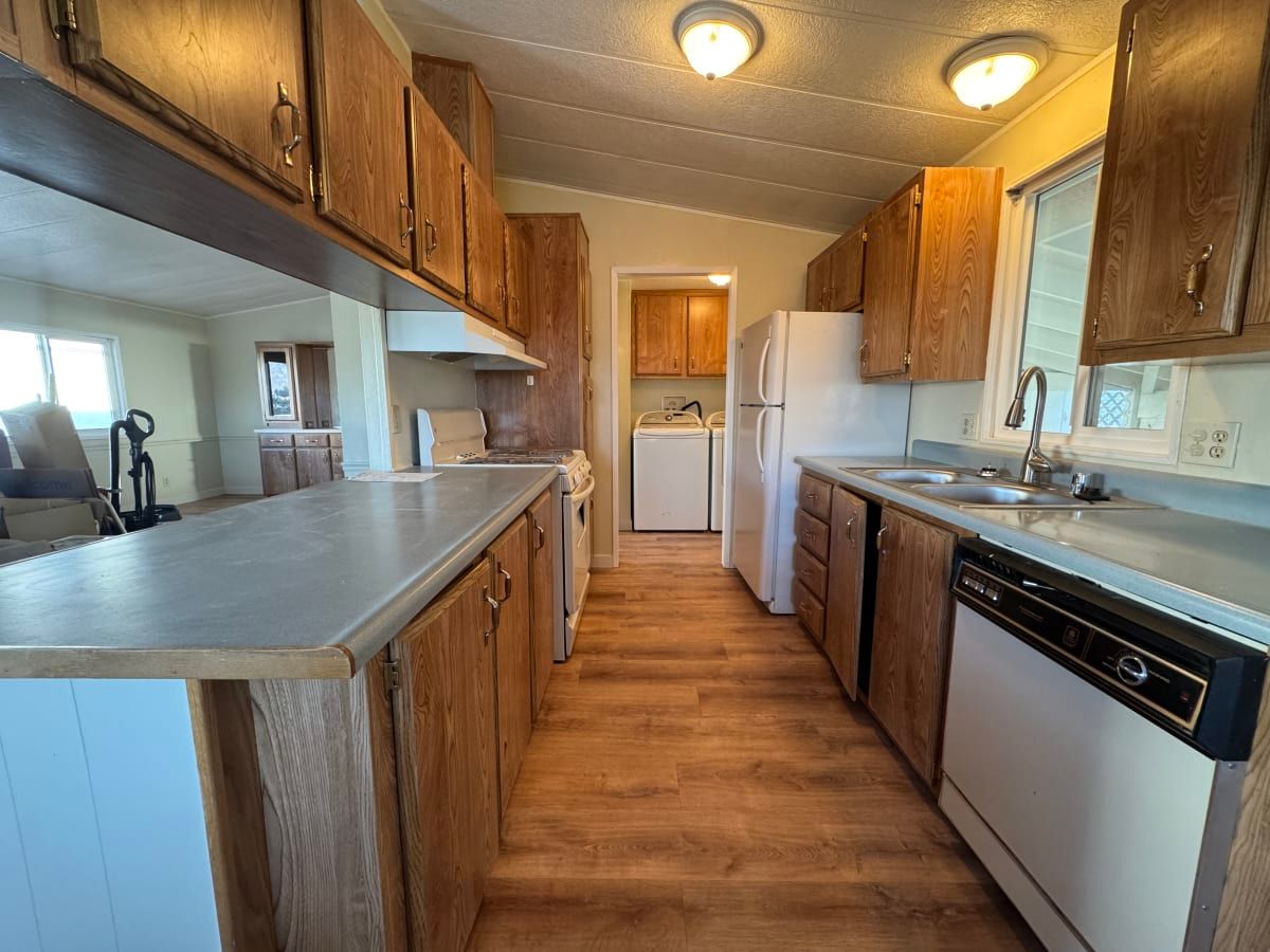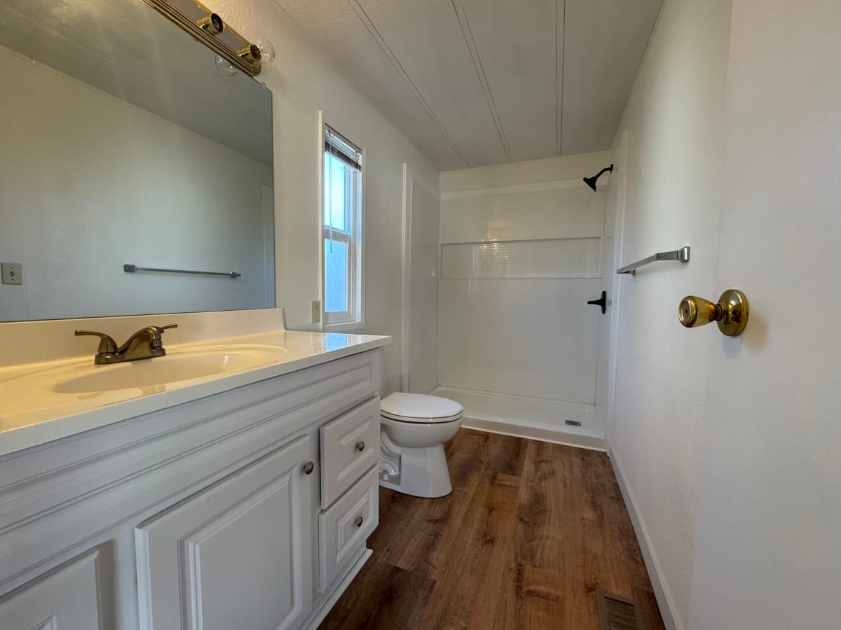 Located in Aspen Mobile Home Park, this home offers an exceptional setting as one of only three homes situated directly across from the open park, providing beautiful mountain views and a spacious feel. Inside, you’ll find brand-new hardwood flooring throughout, a completely remodeled primary bathroom, and a new vanity in the guest bathroom. The home features 2 bedrooms and 2 bathrooms, along with a covered carport and a convenient storage shed for additional space. Enjoy comfortable living in a desirable location with scenic surroundings. Lot rent subject to contractual changes.