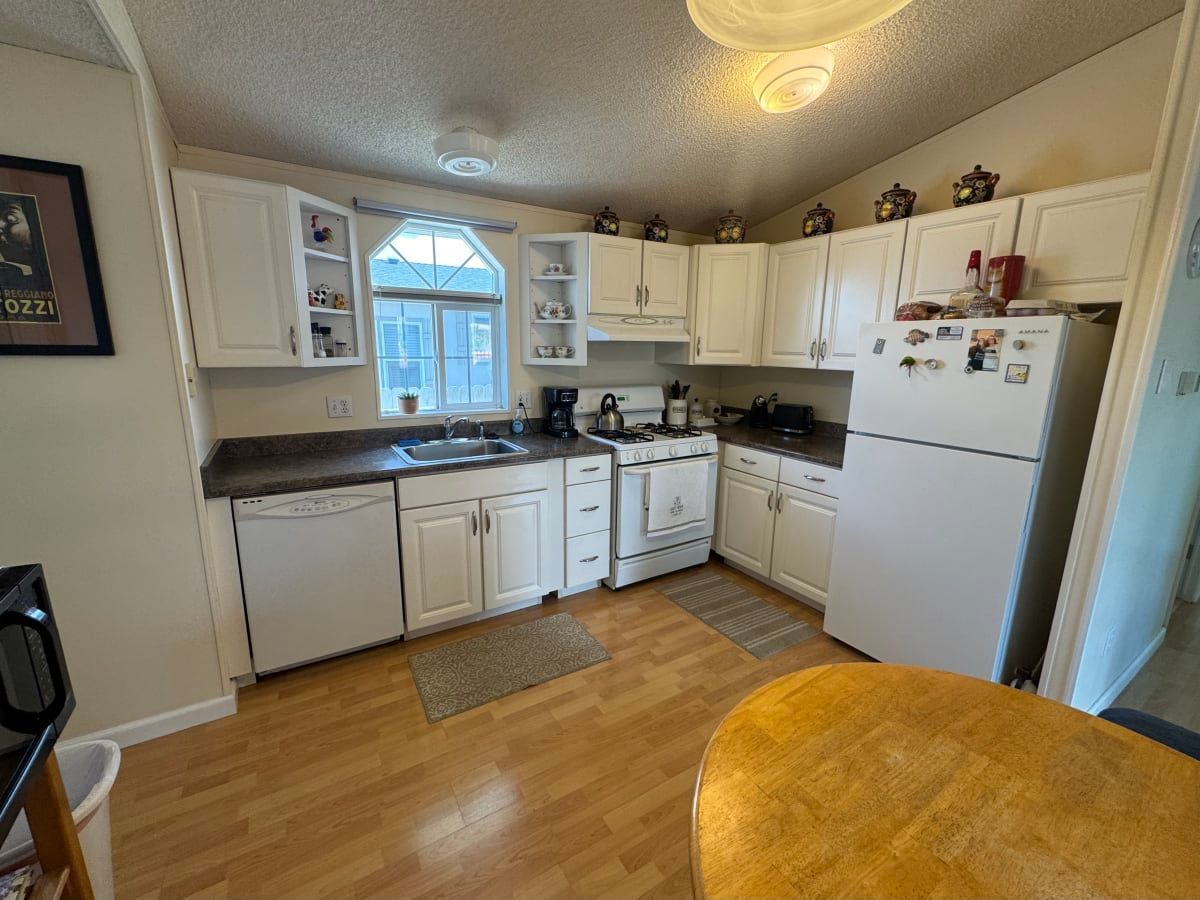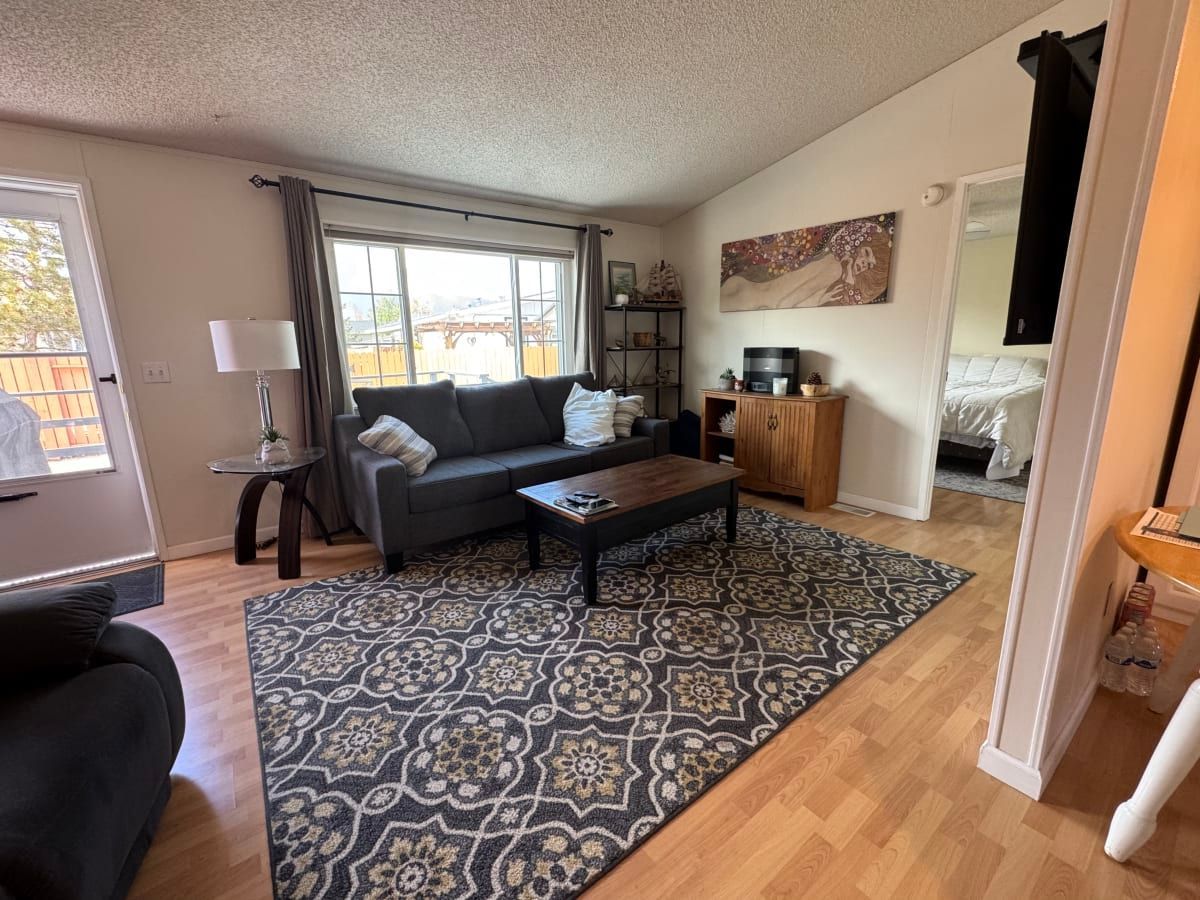 Step into your moderatley updated home in Aspen Mobile Home Park! The home offers 3 bedrooms and 2 bathrooms, along with an extra large driveway for added convenience. Enjoy the outdoor deck that faces the mountains and an additional storage shed, perfect for maximizing space and functionality. Located in a peaceful area close to all conveniences, this home is one-of-a-kind. Lot rent subject to contractual changes.