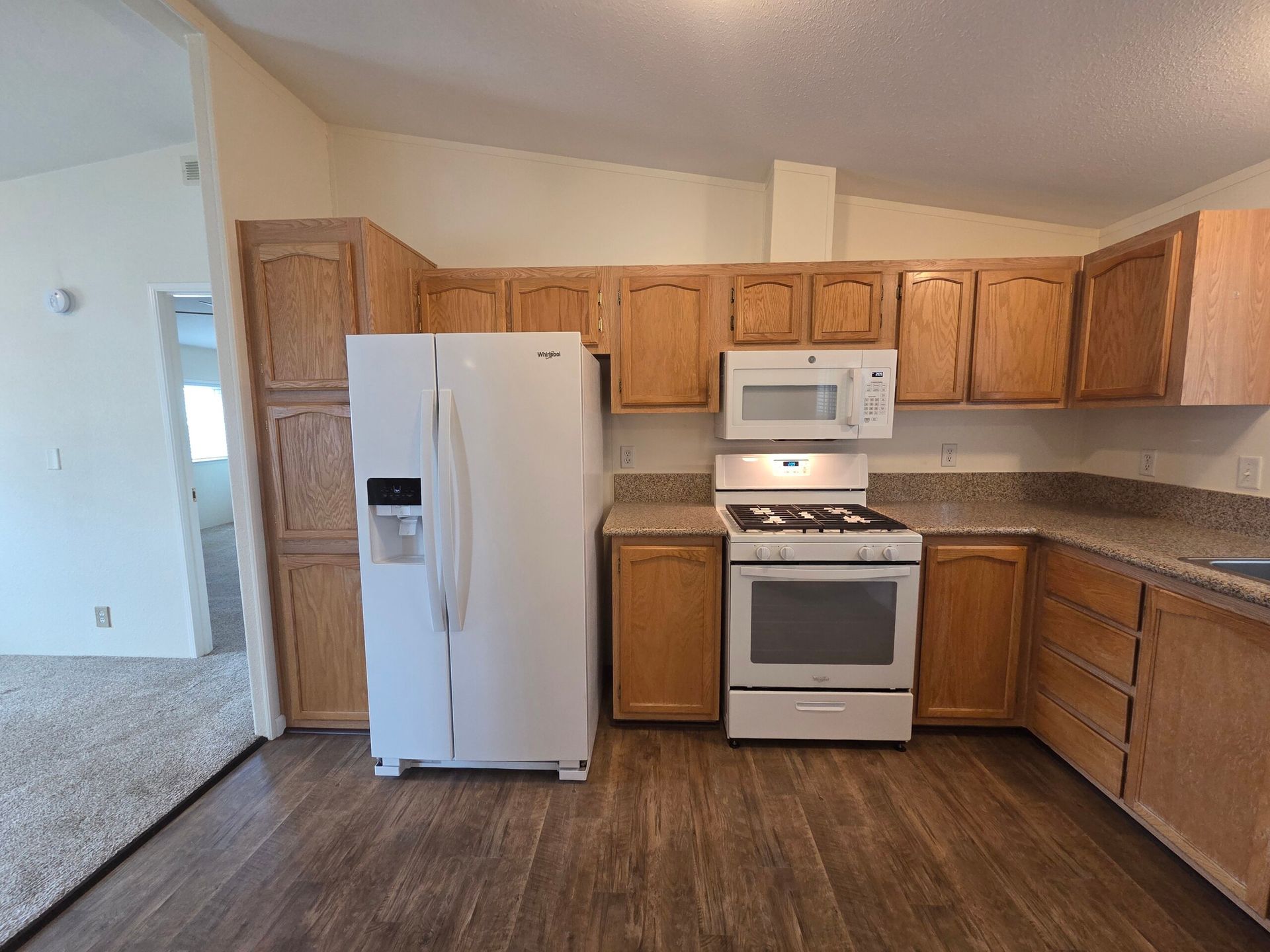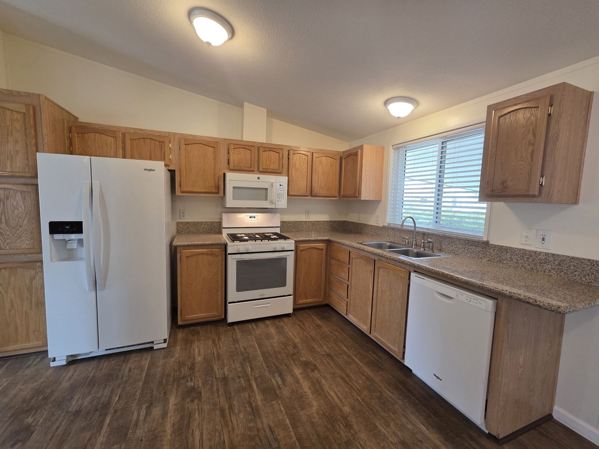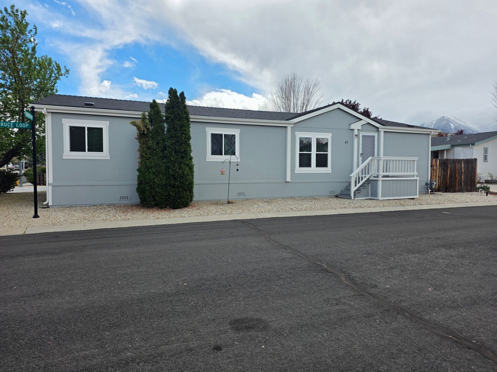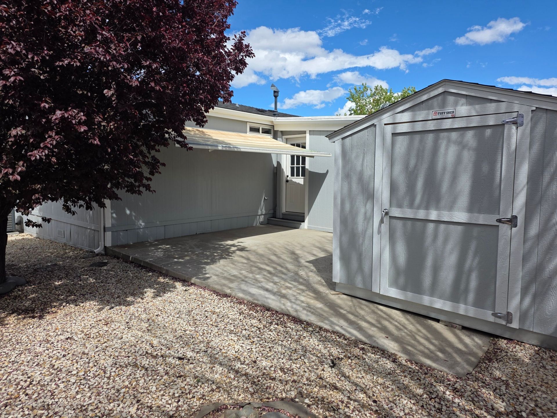 Welcome Home! Features: Immaculate 2002, 3-bedroom, 2-bath manufactured home with 1,568 sq ft on a corner lot in desirable Aspen Mobile Home Park in Gardnerville. This sought-after family park offers fantastic amenities including an onsite gym, hot tub, and two clubhouses, along with well-kept common areas. Enjoy peace of mind with a wind resistant roof and exterior paint that are only about 4 years old, newer transferable lifetime windows, newer water heater and appliances, A/C, and an updated thermostat. The low maintenance landscaping is supported by a drip system, so the exterior stays easy to care for. Inside, the home feels fresh and inviting with vaulted ceilings, new interior paint, newer luxury vinyl plank flooring and carpet, faux vinyl blinds, and updated fixtures and fans throughout. The kitchen has abundant oak cabinetry, expansive granite counters, pantry storage, gas range, microwave, dishwasher, and side by side refrigerator. The spacious primary suite is like a private retreat with an oversized bathroom, dual sinks, long vanity, soaking garden tub, and two separate walk in closets. Two additional bedrooms and a well appointed hall bath provide comfortable space for guests, hobbies, or a home office. A dedicated laundry room includes the washer and dryer and offers extra storage as well as an exterior door for easy access to the outdoor living areas. Outside, you’ll love the large patio with a Sun Setter electric awning—perfect for weekend BBQs and get togethers with friends or family, plus an insulated shop with electrical service for projects or extra storage. The oversized, fully insulated carport offers generous covered parking with additional off-street parking in front, and it can easily be converted into a full garage by just adding a door. There is truly nothing to do but move in and start enjoying low maintenance living in the Carson Valley. Terms: Bank financing may be available on approved credit. Call today for additional details! For questions or to schedule your private showing, contact: Cindy Miller. Information is to be deemed accurate but not guaranteed. Buyer to verify all information. Lot rent subject to contractual changes.